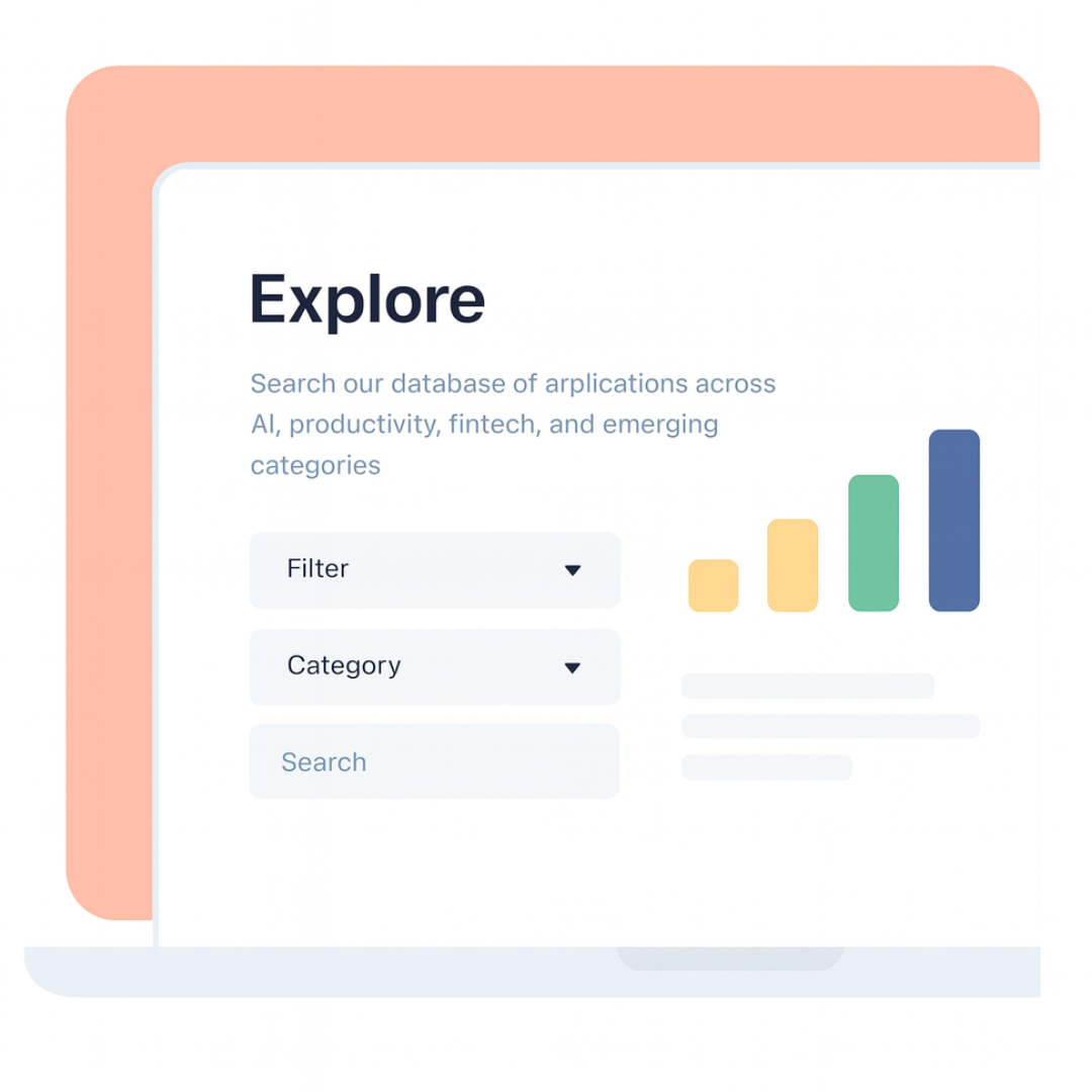 Explore our extensive database of tech applications across AI, fintech, productivity, and emerging categories. With our advanced filtering system, you can compare features, market metrics, and investment potential to identify the next breakthrough applications before they hit mainstream adoption.